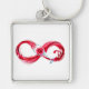 Infinity symbol of continuous stream of red wine pouring into glass wine glass on white background.