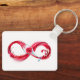 Infinity symbol of continuous stream of red wine pouring into glass wine glass on white background.