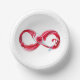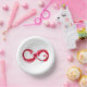 Infinity symbol of continuous stream of red wine pouring into glass wine glass on white background.