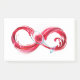 Infinity symbol of continuous stream of red wine pouring into glass wine glass on white background.