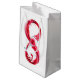 Infinity symbol of continuous stream of red wine pouring into glass wine glass on white background.