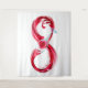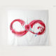 Infinity symbol of continuous stream of red wine pouring into glass wine glass on white background.