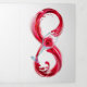 Infinity symbol of continuous stream of red wine pouring into glass wine glass on white background.