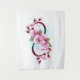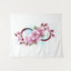 Symbol of infinity with flowers and leaves of blooming sakura blossoms on light background, painted with blue paint. The symbol of infinity. Sakura blossoms. Tattoo style. Hanami
