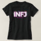 This shirt features prominently displayed INFJ label, a colourful floral doodle pattern behind it, and a template space for you to add your own custom tagline if you wish!