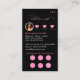 A beautifully designed black and pink loyalty discount business card that includes your own photos as well as your name, title, QR code and social media handle. Perfect for small businesses. Simply customise and make it your own!