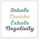 Decorate your laptop, phone, notebook, or any other surface with these fun and colourful "Inhale Ceviche Exhale Negativity" stickers! Made from high-quality vinyl, these stickers are durable and weather-resistant, so they can stand up to daily wear and tear. The design features the words "Inhale Ceviche Exhale Negativity" in bold, eye-catching letters. These stickers are perfect for anyone who loves ceviche and wants to spread a positive message. Stick them anywhere you need a reminder to take a deep breath, enjoy some tasty food, and let go of negativity.