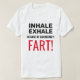 Black text Inhale, Exhale, In case of emergency. Red text Fart! Funny white or light colour t-shirt for anyone. Do not forget to choose another style, size, colour, and gender of the apparel. Customisable. You can change or delete four lines of text independantly. Use Customise further option to change the font, colours, etc. You can transfer this design to another product, just use the option hereinafter. Have fun, buy one, enjoy, stay safe, and be happy!