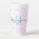 Festive spring and Easter background pattern, a large light pink monogram initial and "Happy Spring" in a modern script font, decorate this 17oz. stylish latte mug. Easily change or remove text and initial using the Template provided. Available in 12oz or 17oz size. Use for any beverage. Makes a lasting and thoughtful gift for a special person. See "About This Product" at side for more information.