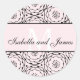Wedding Sticker with Initial Bride Groom Names Wedding Pink Floral Pattern. Design by Elke Clarke ©2010. Graphics licensed. More designs available at WhiteWhimsicalWeddings.com and WhiteWhimsicalWeddings.com. Customise with your monogram, names and colours.