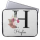 Initial H Monogrammed Pink Boho Floral Laptop Sleeve