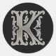 Initial K Round Sticker in silver
