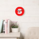 Initial Letter Monogram Modern Style Red White Round Clock
