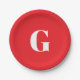 Initial Letter Monogram Red White Plain Simple Paper Plate