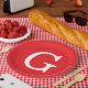 Initial Letter Monogram Red White Plain Simple Paper Plate