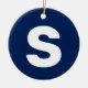 White Initial Letter | Navy Indigo Simple Elegant Trendy Monogram Ceramic Ornament | Modern | Stylish | Minimalist | Personalised | Fun | Cool