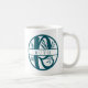 Simple, stylish custom initial letter R floral split monogram coffee mug in modern minimalist typography in teal blue. A perfect custom gift or accessory with a personal touch!