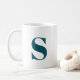 Simple, stylish custom initial letter monogram coffee mug in modern minimalist typography in teal blue. A perfect custom gift or accessory with a personal touch!