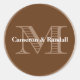 These cognac colour sticker seals are great for letters and packages. Background initial letter is set in fancy majestic typeface. The names are customisable. These sticker seals are perfect for do-it-yourself wedding favours and gift bags. Apply them on small candy boxes, mint tins, jam jars, bags, bottles and more! You will save money by buying in bulk.