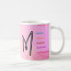 This mug will be a favourite for everyone from your sweet grandma to your teenage sister. With the right message, a mug can become anyone’s treasured companion for years to come. This design features a beautiful, hand-drawn letter "M" in black cursive on a stunning watercolor background. The left side showcases a warm yellow-to-pink gradient, while the right side displays a soft pink-to-yellow gradient. Surrounding the letter are vibrant words in various colours, including blue, orange, red, purple, and pink, highlighting positive traits starting with the letter "M". The overall effect is a visually appealing and uplifting design that celebrates the beauty of the letter "M" and its associated qualities. The watercolor background adds a touch of elegance and sophistication, making this design perfect for inspirational or motivational purposes.