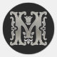 Initial M Round Sticker in silver