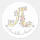 Pretty girls monogram name sticker ideal for embellishing books and to personalised girls items. Stickers reads Annabelle Adams or you can personalise with your own name or surname starting in A. Graphic decorative capital letter A with hearts and flowers art © Designed by Sarah Trett www.sarahtrett.com for www.mylittleeden.com