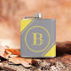 Initial Monogram Geometric Diagonal Yellow Grey Hip Flask