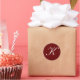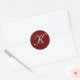 Classic White Letter Monogram on Dark Red Background Sticker Template, "K"