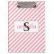 This delightful monogram features a serif initial and a script first name, making it the ideal clipboard for her. With pink and white diagonal stripes, she is sure to love it! Order one today! Complementary items available.