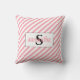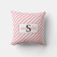 This charming monogram pillow features a serif initial alongside a script first name, making it a delightful accessory for her. With pink and white diagonal stripes, it will be the perfect addition to any little girl's room. Order yours today!