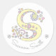 Pretty girls monogram name sticker ideal for embellishing books and to personalised girls items. Stickers reads S Susanna Smith or you can personalise with your own name or surname starting in S. Decorative capital letter S with hearts and flowers art © Designed by Sarah Trett www.sarahtrett.com for www.mylittleeden.com