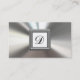 Professional, Promotional Silver Metallic Look Cards. A classy, cool, and unique platinum bent metal plain surface look design in silver stainless steel look is a bold, strong, modern business card. Silver artistic design metal plate is on the front and also on the back. Easily add your initial monogram, company name or your name, etc. on the front and any information on either or both sides. The perfect professional-looking card especially for industrial, construction and building occupations, and skilled trades, or retail and wholesale sales, such as the gold, silver, aluminium metals, or jewellery trades. A strong business card that stands out from the rest. This card can also be used for graduation, engagements, weddings, anniversary parties, etc. Shown is the letter D which can easily be changed.