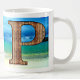 Initial Monogram Letter P on Beach, a great mug for him or her for Birthday Christmas Father's Day or any time!