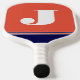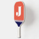 This monogrammed pickleball paddle is simple, modern, minimal but bold and colourful with its navy blue and orange stripes and your first or last initial in white.