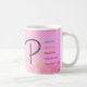 This design features a beautiful, hand-drawn letter "P" in black cursive on a stunning watercolor background. The left side showcases a warm yellow-to-pink gradient, while the right side displays a soft pink-to-yellow gradient. Surrounding the letter are vibrant words in various colours, including blue, orange, red, purple, and pink, highlighting positive traits starting with the letter "P". The overall effect is a visually appealing and uplifting design that celebrates the beauty of the letter "P" and its associated qualities. The watercolor background adds a touch of elegance and sophistication, making this design perfect for inspirational or motivational purposes.