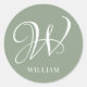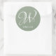Initial Personalised Elegant Sage Green Monogram Classic Round Sticker