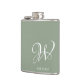 Initial Personalised Elegant Sage Green Monogram Hip Flask