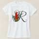 The initial R in script lettering with a vintage botanical illustration of Red Hot Poker.