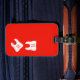 An initialled molar dentistry industry luggage tag in a bright red colour.