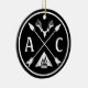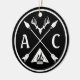 Showcase your adventurous spirit with this personalised round emblem design. The ornament features two crossed arrows, symbolising exploration, with a deer antler at the top and a campfire at the bottom, bringing a rustic, outdoorsy vibe. Customise the initials "A" and "C" with your chosen letters, making this a truly personal keepsake or gift. The black and white design offers a bold contrast, perfect for those who love nature, camping, and adventure.