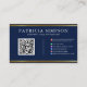 Ink Blue & Gold Edge Modern QR Code Template Business Card