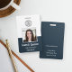 Personalise these vertical badges with an employee photo and name, along with two lines of additional custom text for employee ID number, role or title, location, or other key data. Add your logo at the top. Additional custom text field located on the back for return information or other details.