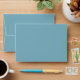 An abstract background reminiscent of liquid ink in shades from from deep teal through cyan and white is the backdrop for elegant handwritten script text and modern design layouts in the pieces of this beautiful wedding suite. The coordinating envelope shown here features the above abstract interior and a solid, light teal exterior with a template to add your names and address. Search ID762 to see all the coordinating pieces in this set.