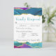 Abstract Watercolor Ink Fuchsia Pink Teal Gold wedding RSVP reply card with meal choice and a teal font.