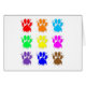 A colourful pattern of dog paw prints with ink splatter effect.
