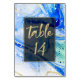 Inky Splash Blue Marble with Gold foil Wedding Table Number