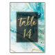 Inky Splash Teal Marble with Gold foil Wedding Table Number