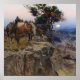 Charles (CM) Russell, the “cowboy artist”, created more than 2,000 paintings of cowboys, Indians, and landscapes set in the Western United States. He lived and worked among the cowboys and the Blood Indian tribe in his younger years. This painting is called “Innocent Allies” and depicts 3 horses waiting patiently while their riders rob a stage coach.