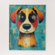 This design features a colourful dog illustration with big and innocent eyes. This design consists of a blue background, and it is a great pick for dog lovers.