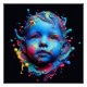 A portrait of a young boy's face in an abstract style. Set against a dark background, the sky-blue tones blend seamlessly with vibrant splashes of colour, creating a captivating 3D effect. The artwork captures the innocence of the child's expressions, surrounded by a world of colourful imagination.
